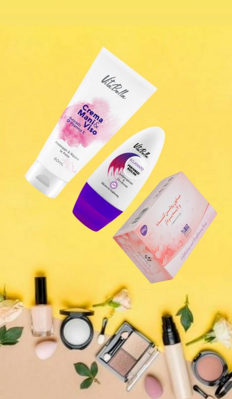پک تیرگی بدن نقره ای شامل صابون روشن کننده کرم آبرسان روشن کننده حاوی آووکادو مام رول روشن کننده بدن